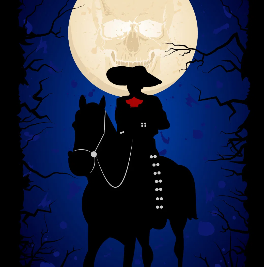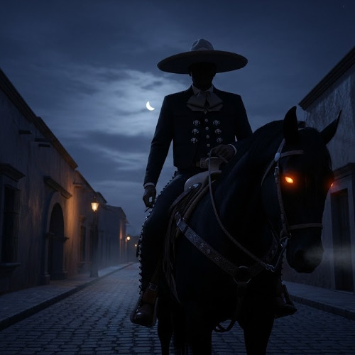 El Charro Negro (The Black Charro) is a legendary ghostly horseman from Mexican folklore. Dressed in an elegant black charro suit, he appears on lonely roads at night often offering gold, a ride, or help to travelers in distress. But beware: accepting his offer usually means making a deal with the devil, or losing your soul. His story serves as a moral warning about greed and temptation.